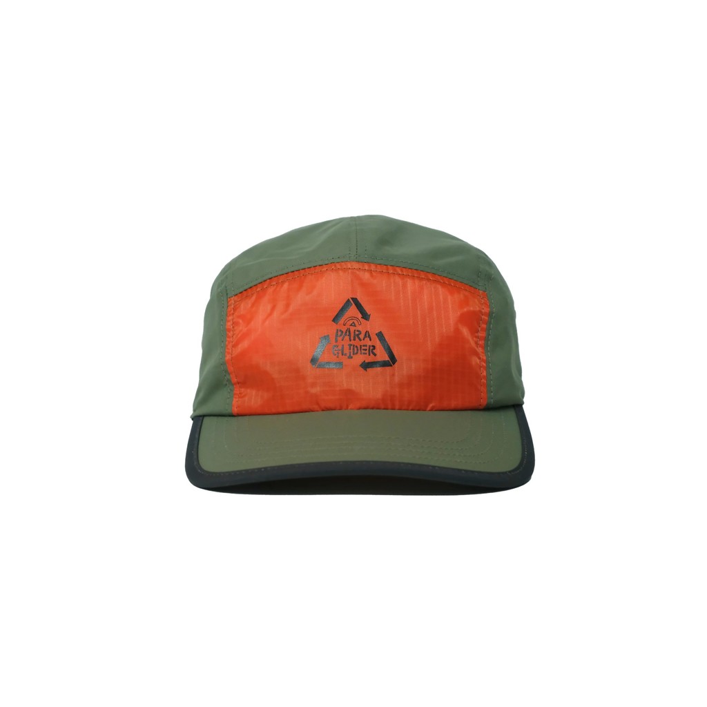 * 나일론 재질의 컬러블록 캠프캡입니다. 로고가 새겨진 정면 원단은 패러글라이더를 적용했습니다.